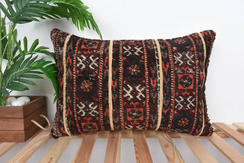 Blue & Red Patchwork Throw Pillow, Handmade Embroidered Rectangle Pillow