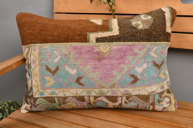 Embroidered Brown & Purple Pillow, Handmade Patchwork Throw Pillow
