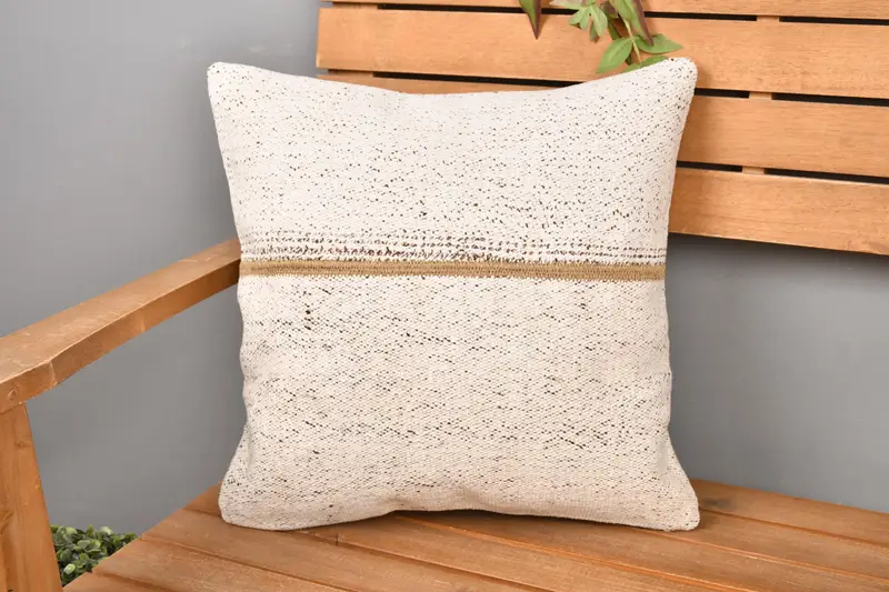 Embroidered Beige Patchwork Throw Pillow, Handmade Vintage Pillow