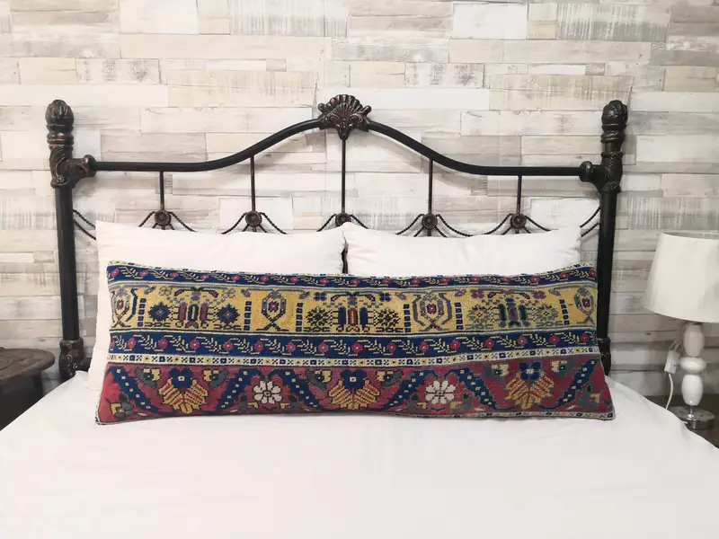 Embroidered Wool Throw Pillow, 16x48 Inch Handmade Geometric Cushion