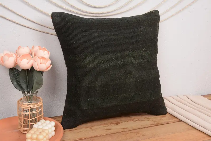 Handmade Brown Striped Throw Pillow, Vintage Embroidered Cushion