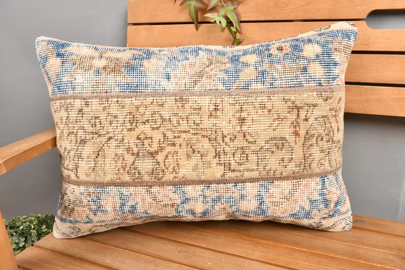 Beige & Brown Patchwork Throw Pillow, Handmade Embroidered Cushion