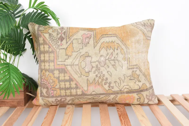 Beige & Yellow Floral Throw Pillow, 20x28 Handmade Cushion