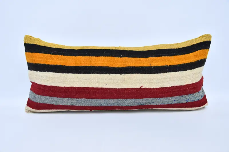 Red & Orange Striped Throw Pillow, Handmade Rectangle Pillow