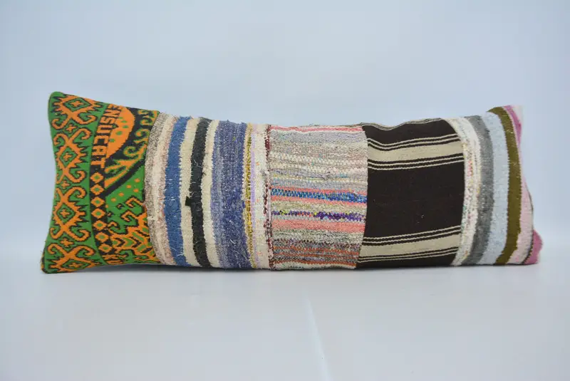 Handmade Blue & Green Striped Throw Pillow, Vintage Cushion