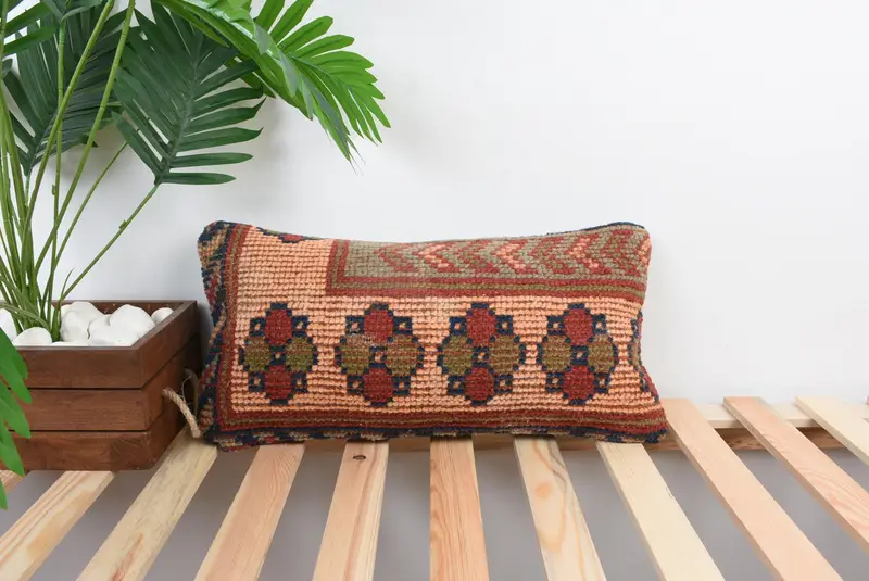 Red Southwestern Embroidered Throw Pillow, Handmade Vintage Cushion