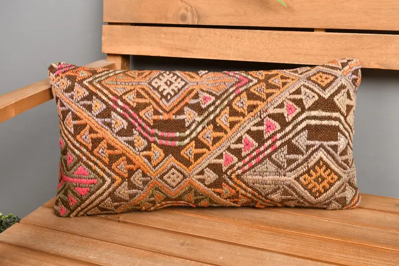 Orange & Pink Southwestern Embroidered Pillow, Handmade Throw Pillow