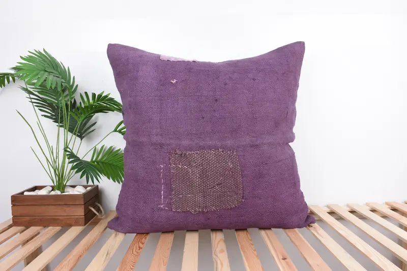 Handmade Purple Southwestern Throw Pillow, Vintage Embroidered Cushion