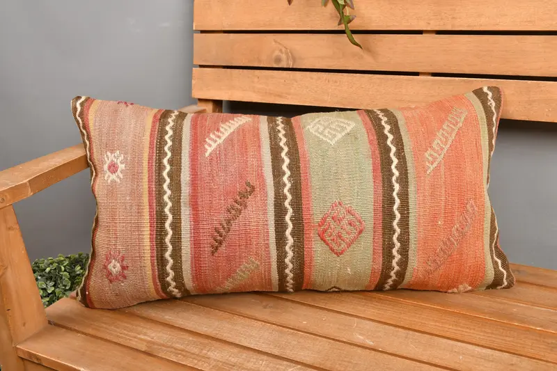 Red Southwestern Embroidered Pillow, 12x24 Handmade Throw Pillow