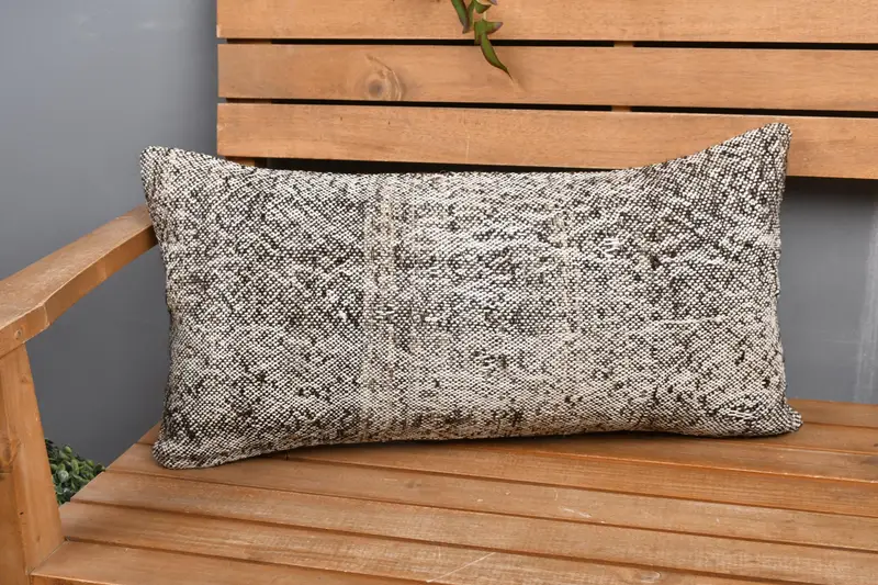 Brown Southwestern Kilim Throw Pillow, 12x24 Handmade Cushion