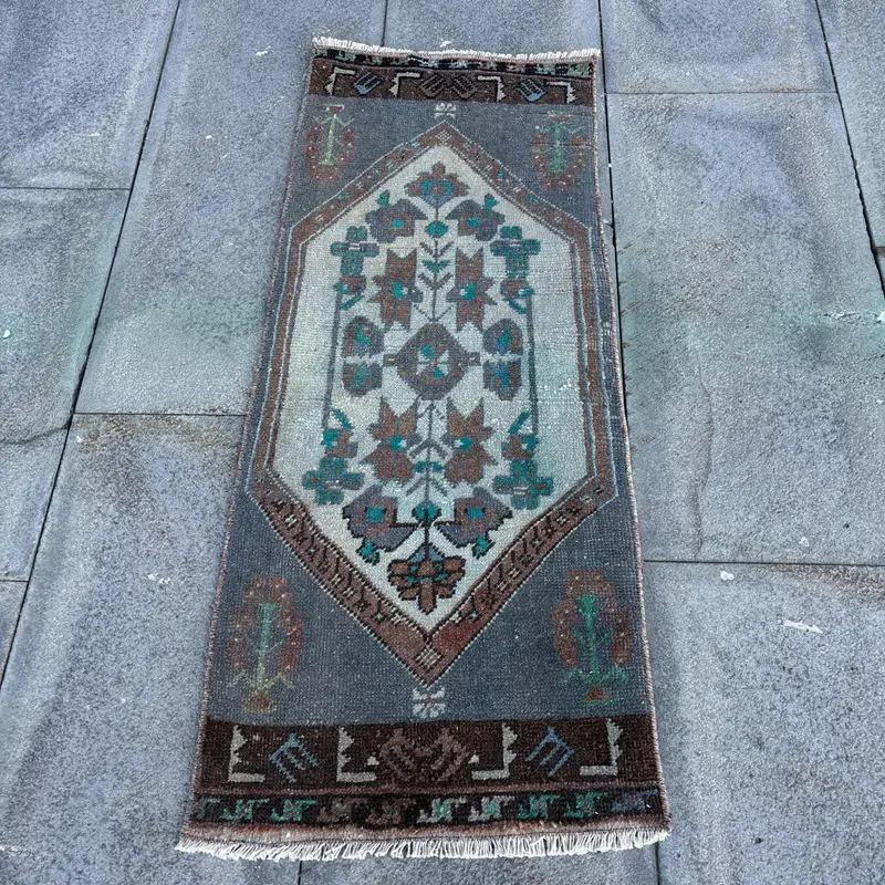 Elegant Beige Rug, 1.3x3.2 ft with Green Floral Motifs