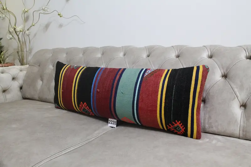 Handmade Striped Throw Pillow, Rectangular 12x36 Inch Vintage Cushion