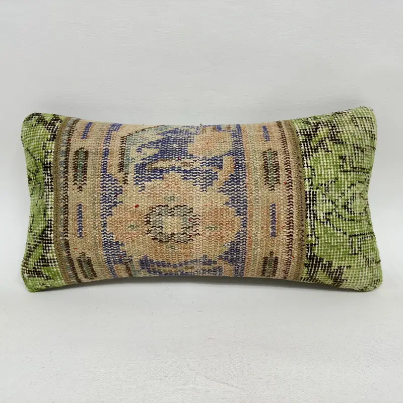 Blue & Green Patchwork Throw Pillow, Handmade Embroidered Cushion