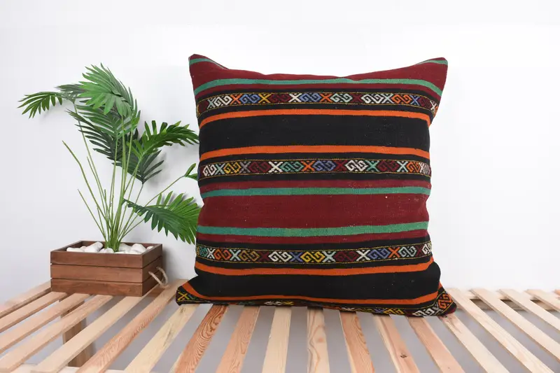 Brown & Orange Embroidered Throw Pillow, Handmade Vintage Decor