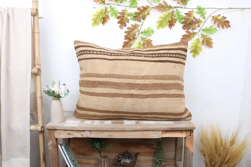 Beige & Brown Striped Throw Pillow, 20x28 Handmade Cushion