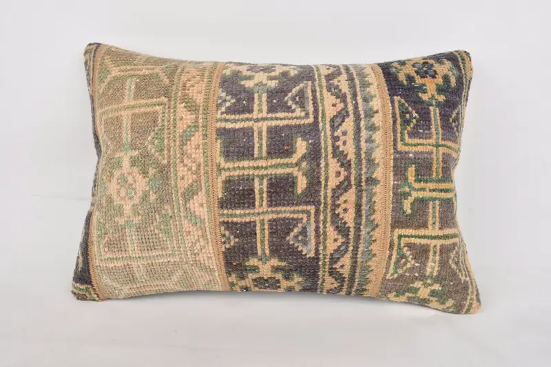Blue & Brown Patchwork Throw Pillow, Handmade Embroidered Cushion