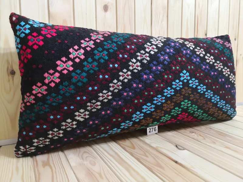 Handmade Red & Bronze Geometric Pillow, 16x36 Inch Throw Pillow