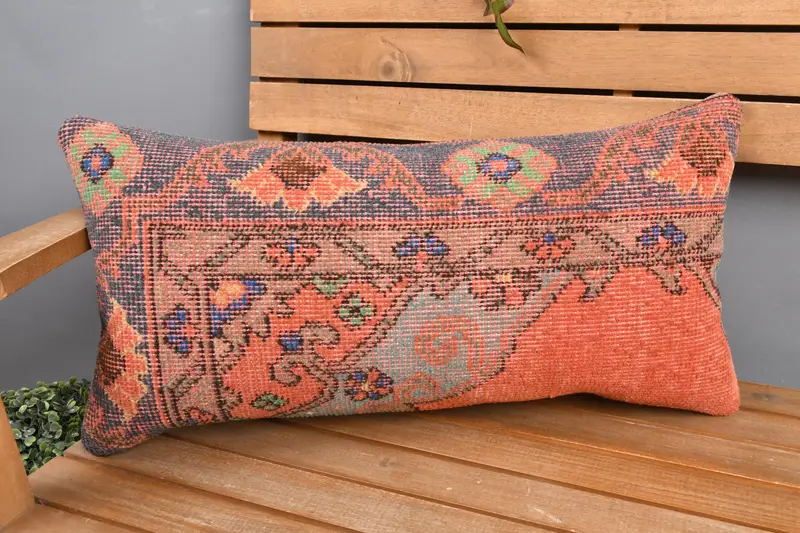 Red & Bronze Embroidered Throw Pillow, Vintage Floral Cushion