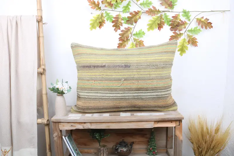 Handmade Brown & White Striped Throw Pillow, Versatile 20x28 Pillow