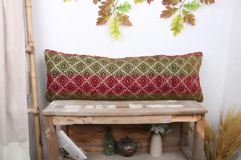 Green & Red Geometric Throw Pillow, Handmade Vintage Decor Pillow
