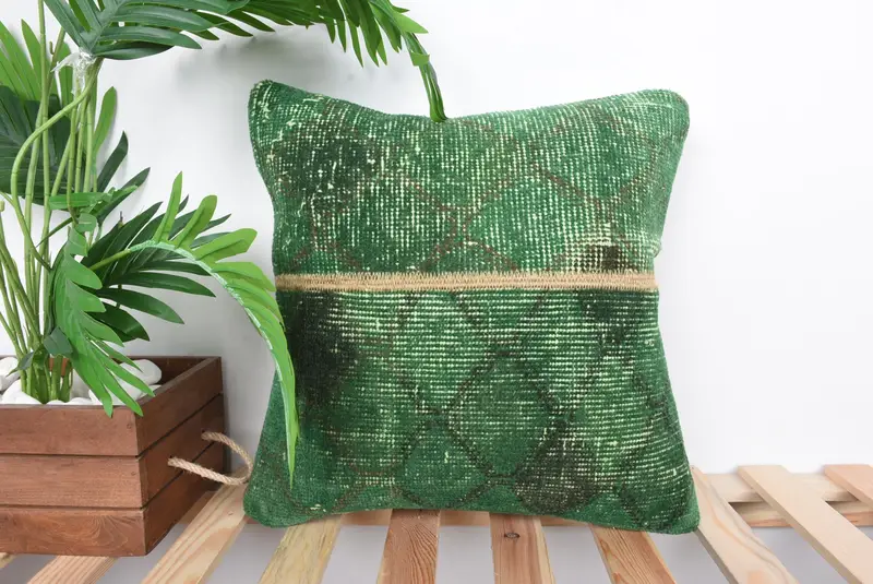 Green, 16x16 Embroidered Patchwork Throw Pillow, Handmade Vintage Charm