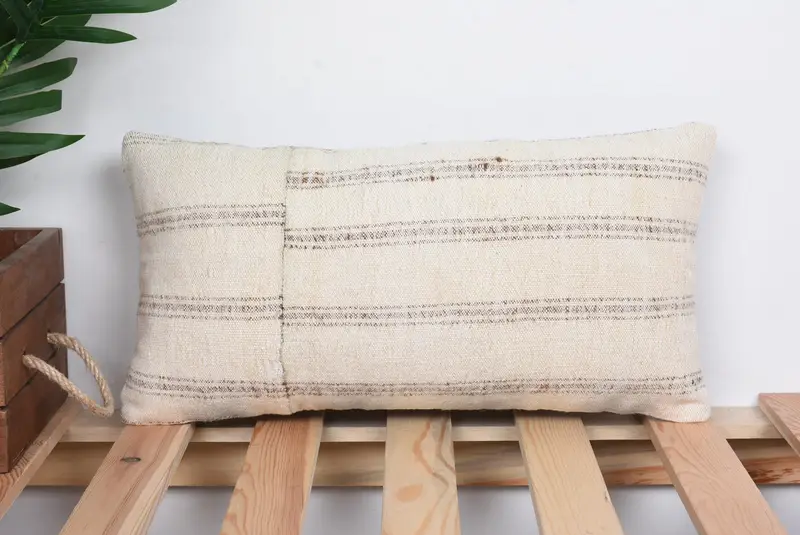 Handmade Striped Throw Pillow, Embroidered Vintage Linen Pillow