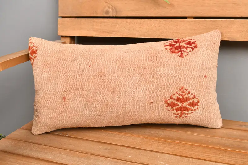 Geometric Beige & Brown Pillow, 10x20 Handmade Throw Pillow