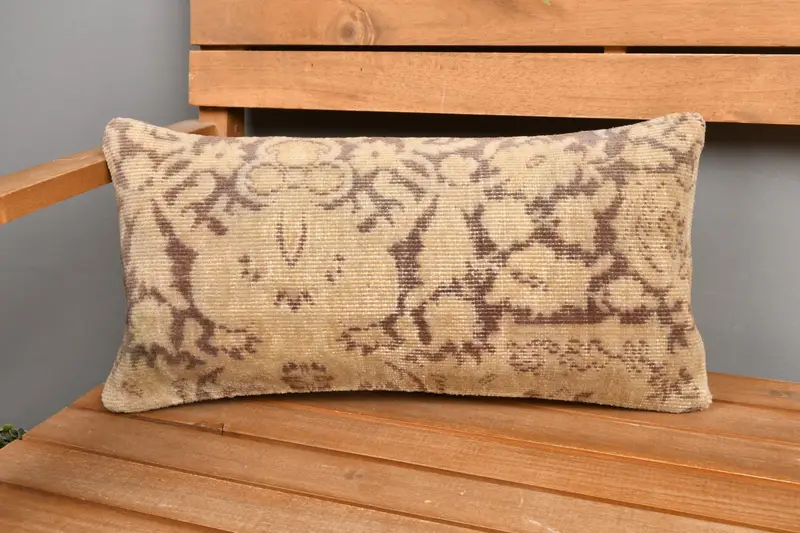 Beige & Brown Floral Embroidered Pillow, Handmade Vintage Throw Pillow