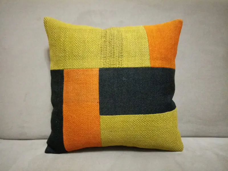 Embroidered Wool Throw Pillow, Vintage Patchwork Kilim Pillow
