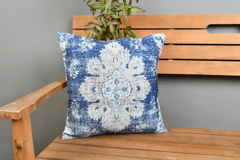 Handmade Blue Southwestern Throw Pillow, Vintage Embroidered Cushion
