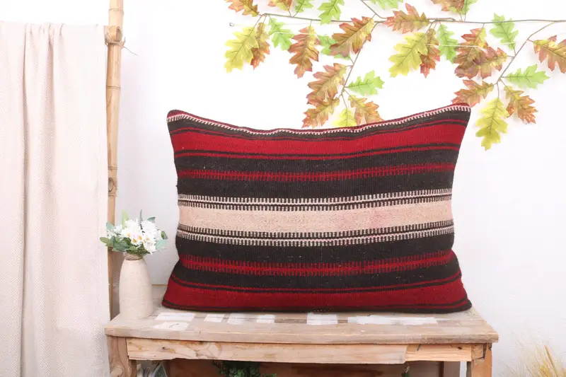 Red & Brown Striped Pillow, 20x28 Embroidered Throw Pillow