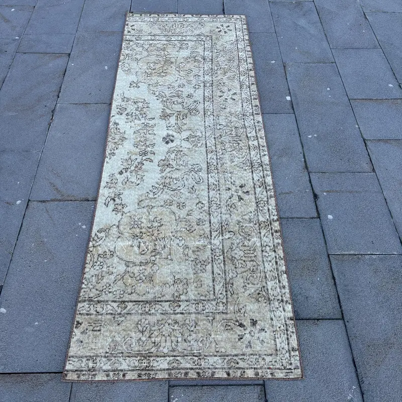 Elegant Beige Persian Rug, 2.5x7.2 ft Beige & Brown
