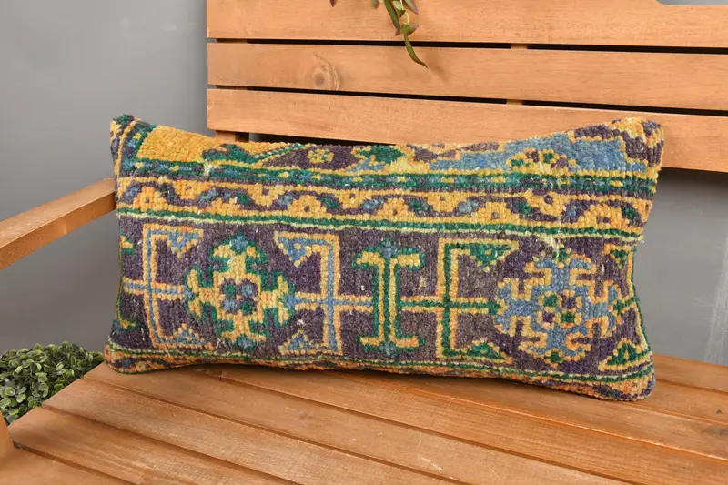 Blue & Orange Southwestern Embroidered Throw Pillow, Vintage Handmade Cushion