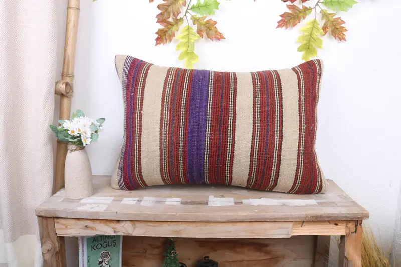 Blue & Red Striped Pillow, Embroidered Throw Pillow