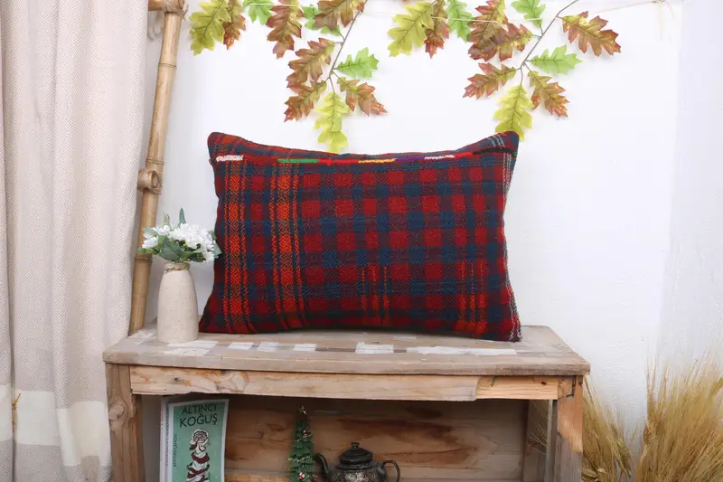 Red Southwestern Kilim Throw Pillow, Handmade Embroidered Cushion