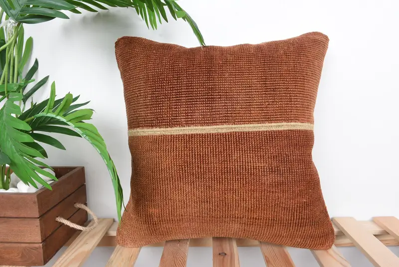 Embroidered Brown & Bronze Patchwork Throw Pillow, Vintage Handmade Pillow