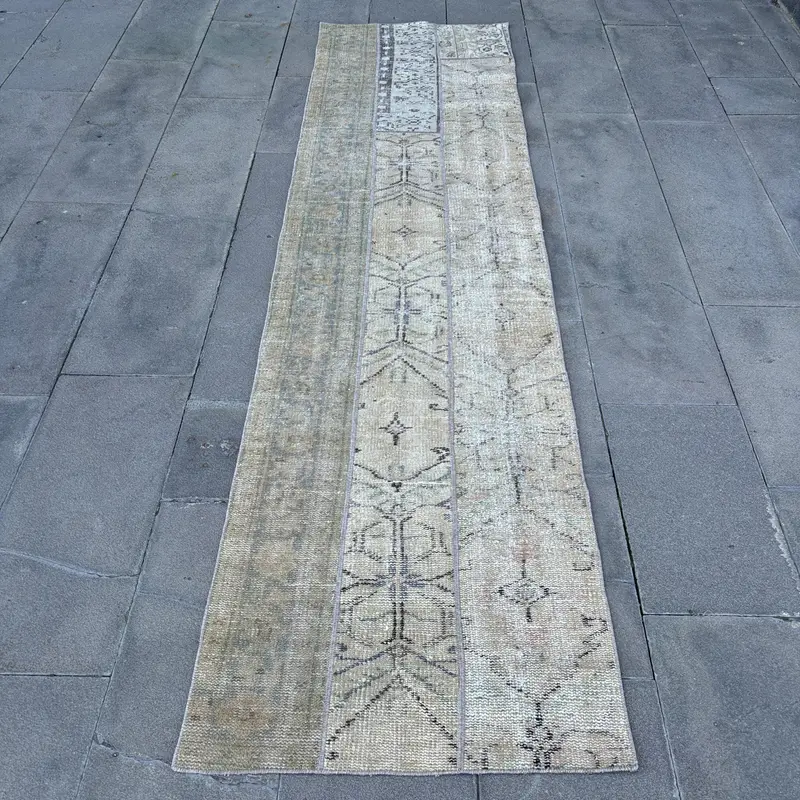 Elegant Beige & Green Rug, 2.3x9 ft Polka Dot Design