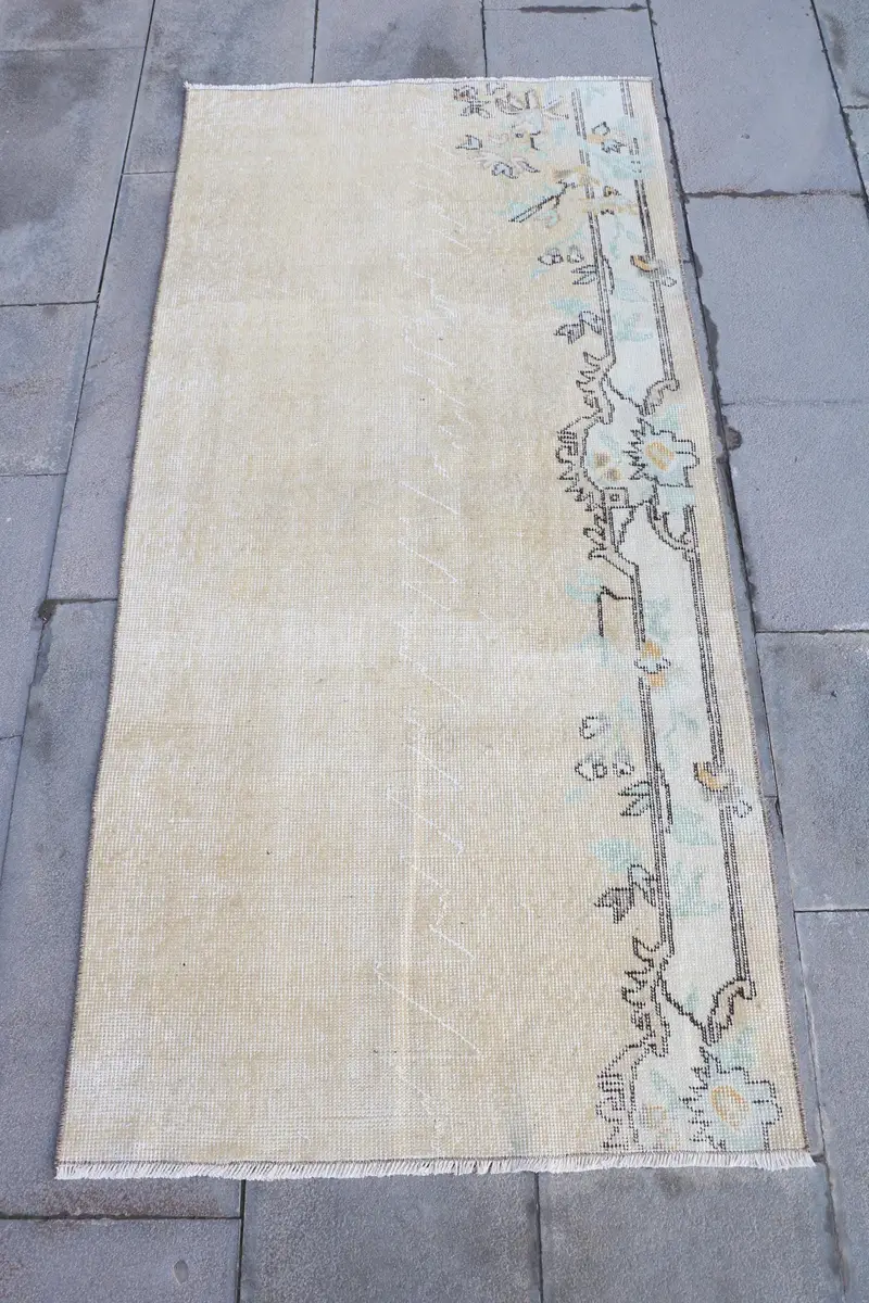 Blue, Beige Floral Rug, 2.6x5.4 ft Chic Decor
