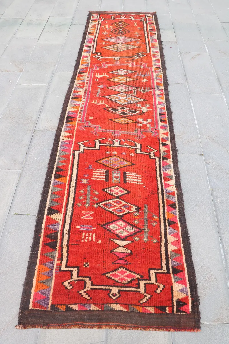 Red Ombré Rug, 2,8x11,5 ft Elegant Modern Decor