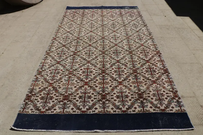 Elegant Black & Beige Rug, 5,3x9,8 ft Geometric Floral
