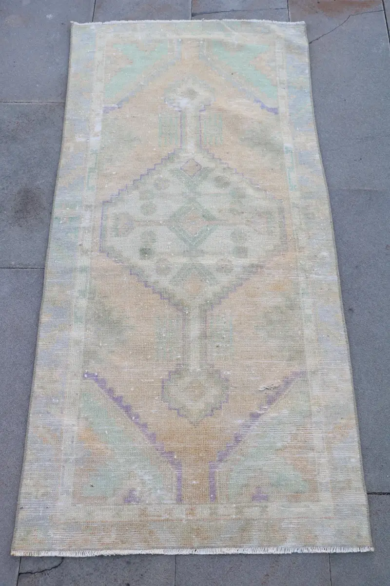 Beige Southwestern Rug, 2,3x4,9 ft with Green Accents