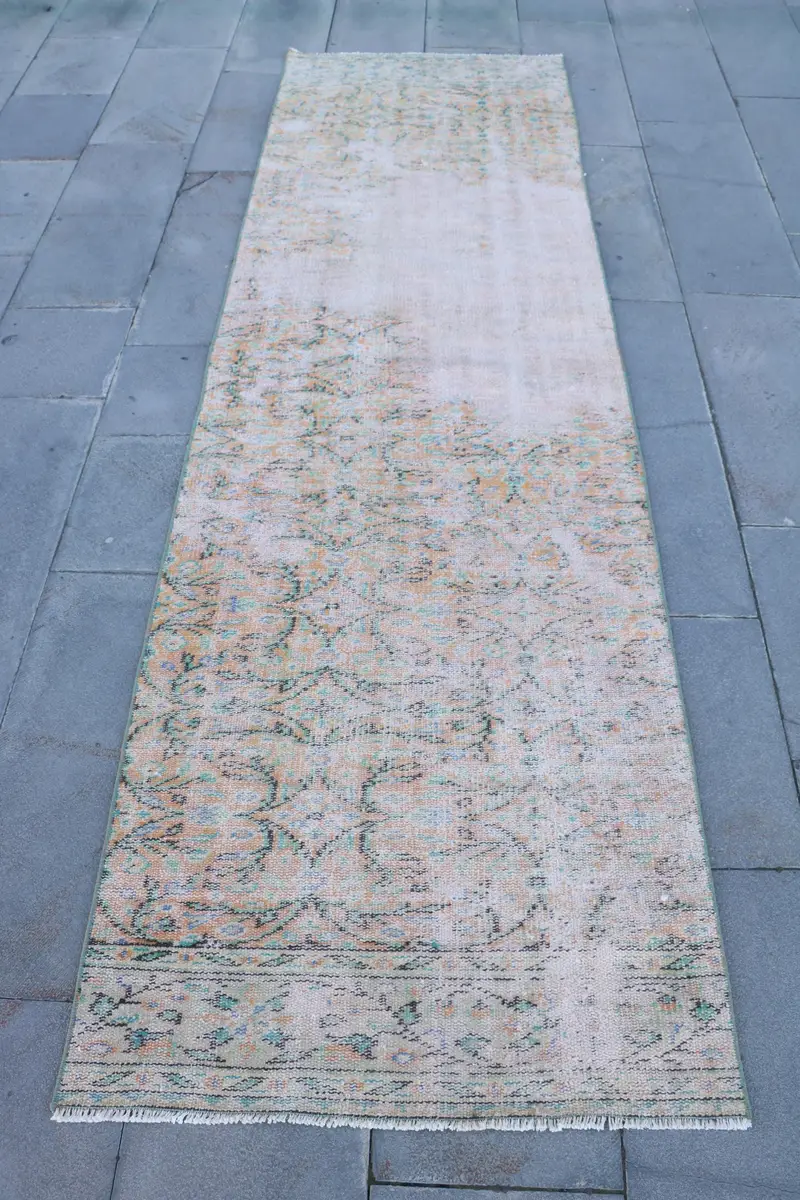 Green & Orange Rug, 2,8x9,4 ft Geometric Floral Motifs
