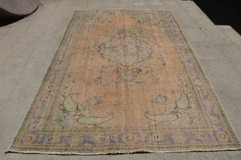 Orange & Blue Rug, 5.8x9.4 ft Geometric Floral Design