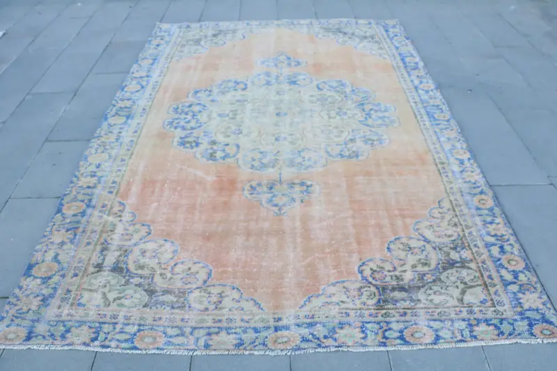Blue Oriental Rug, 6,1x8,8 ft with Brown Accents