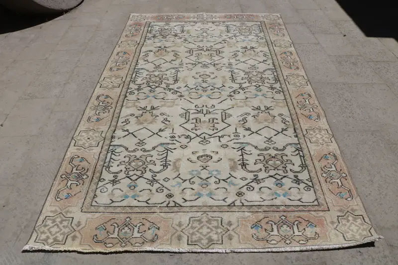 Orange & Beige Rug, 5.2x8.9 ft Geometric Floral