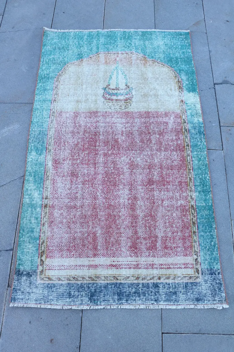 Red, Green Patchwork Rug, 2.7x4.7 ft Chic Decor
