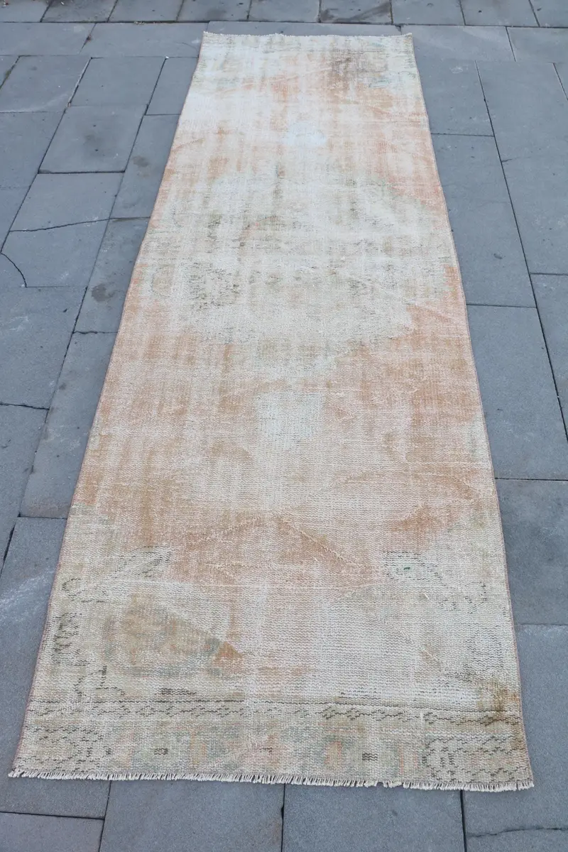 Orange & Beige 3x8 ft Rug, Abstract Pattern