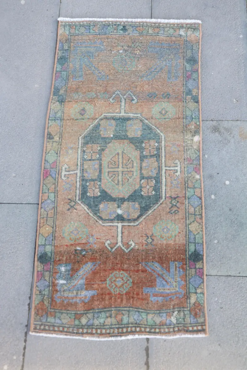 Green, Brown Floral Rug, 1.5x3.1 ft Chic Decor