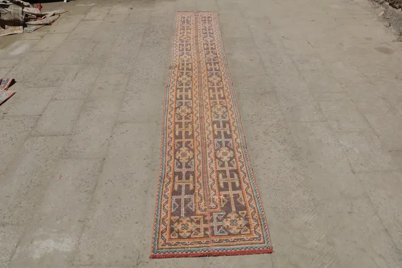Red & Blue Rug, 1,9x11,9 ft Geometric Floral Design