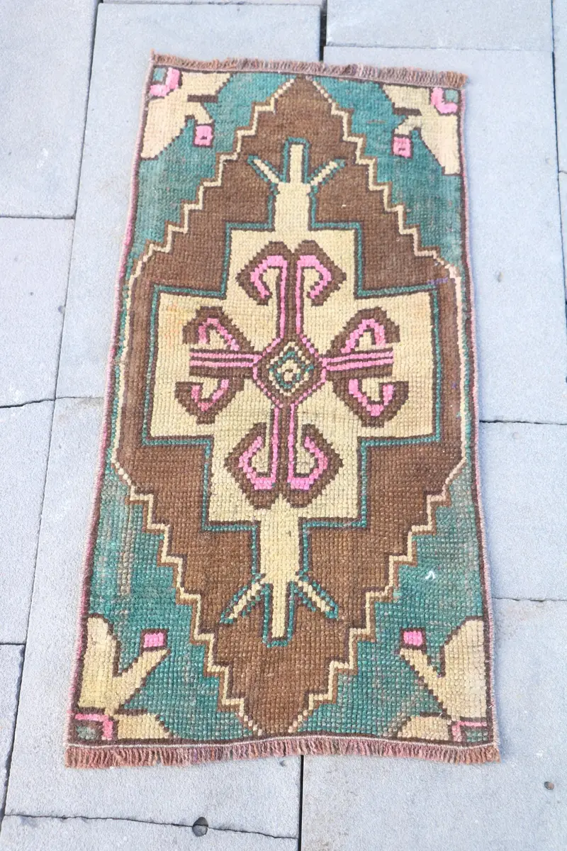 Brown Moroccan Rug, 1.4x2.9 ft with Green Accents